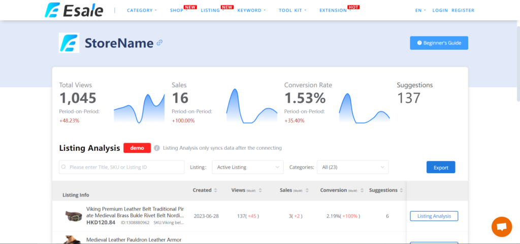 Introducing Esale, a top-tier Etsy store and listings analysis tool designed to enhance the efficiency and boost sales conversion for sellers. Authorized by Etsy's official API, it ensures the security of your data enabling seamless management of your Etsy store. Most importantly, Esale is a completely free etsy shop management and analysis tool .