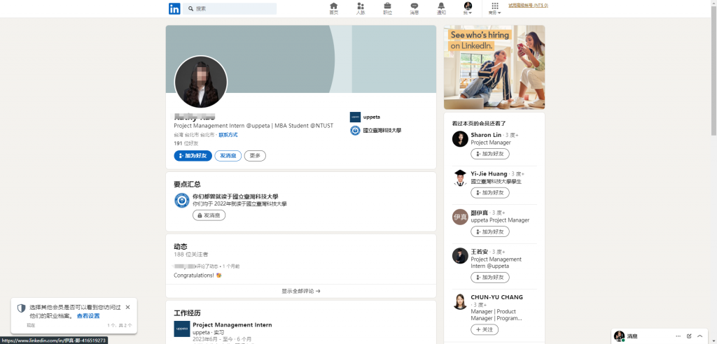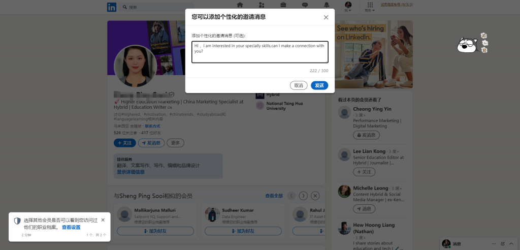 Such as LinkedRadar, a browser plugin that helps you quickly and efficiently communicate with linkedin users and increase your visibility on linkedin