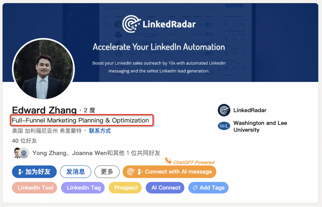 The headline that is flushed out with details about someone’s skills, interests, and goals gives you a fuller picture of what they’re about in those crucial first seconds of introduction. Generic, vague headlines like “Marketing professional” do little to engage people or encourage them to learn more.