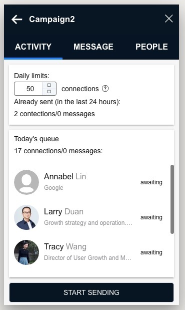 Step4: 打开Campaign后,点击"Start Sending",插件会自动化进行信息发送。