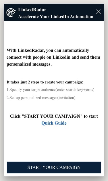 为了提高效率,我们要借助于一个高效工具 -LinkedRadar - LinkedIn Auto Connect Tool,帮助我们自动化完成工作,避免重复性操作。