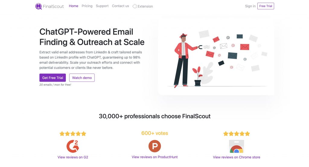 Indeed, FinalScout offers a free trial, granting you the ability to find up to 500 email addresses and send up to 500 emails. If you wish to continue using FinalScout after the trial period, you will need to select a paid plan.